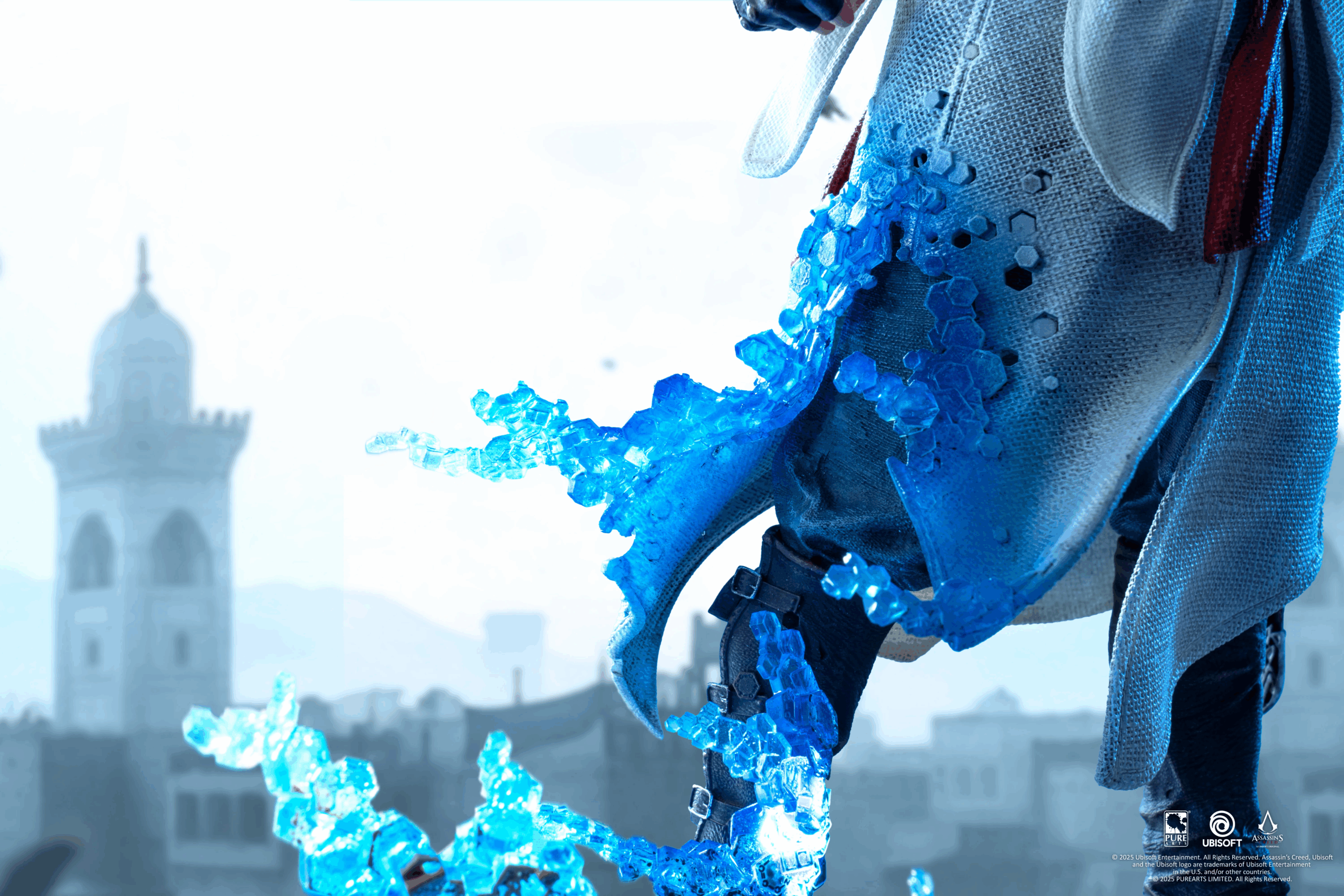 La icónica estatua de Altair en escala 1/8 rinde homenaje al legendario Asesino y protagonista del primer Assassin’s Creed, Altair Ibn-La’Ahad. Con su hoja oculta lista para atacar, se alza sobre una base de piedra inspirada en las antiguas fortalezas de Tierra Santa