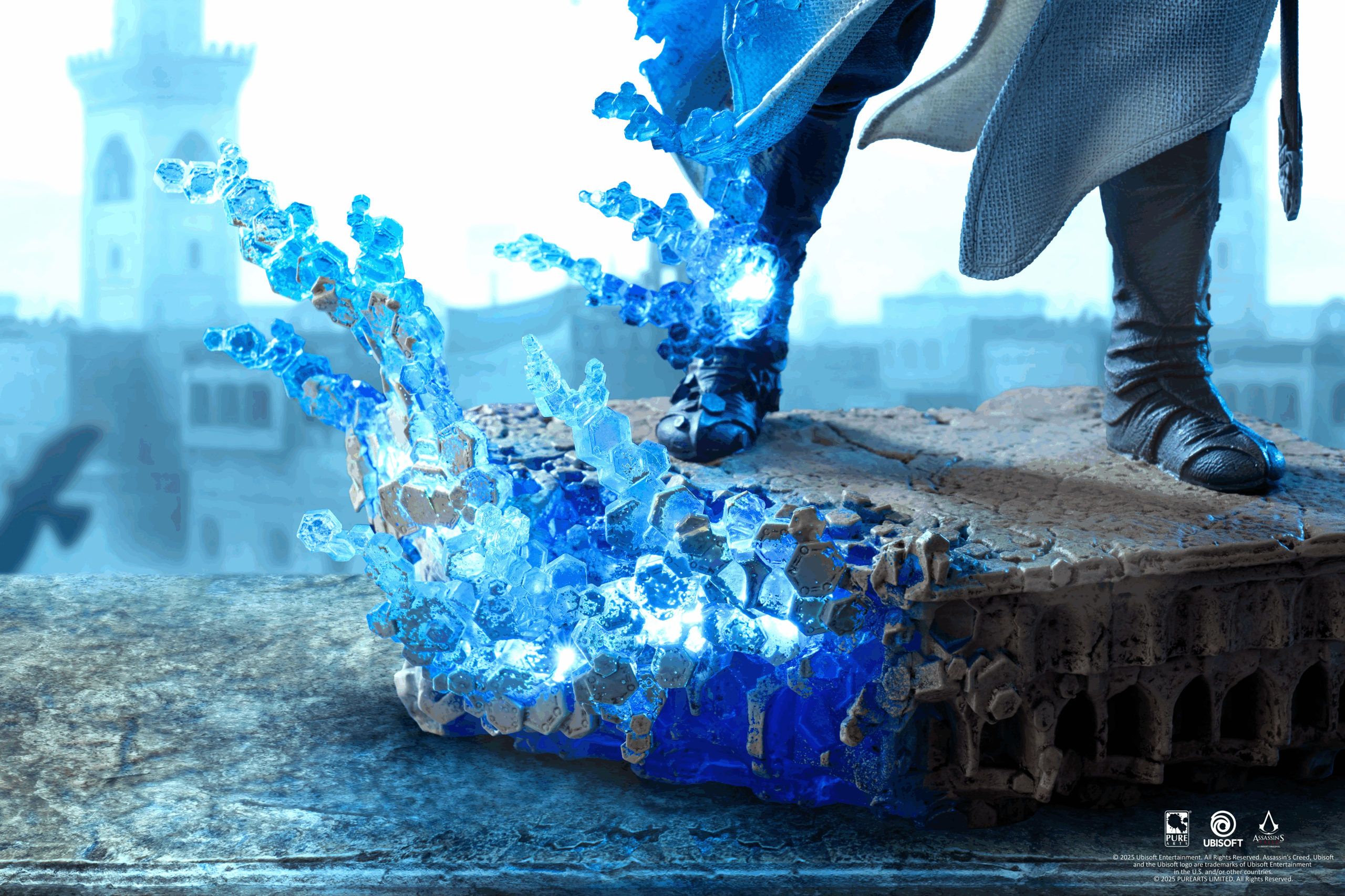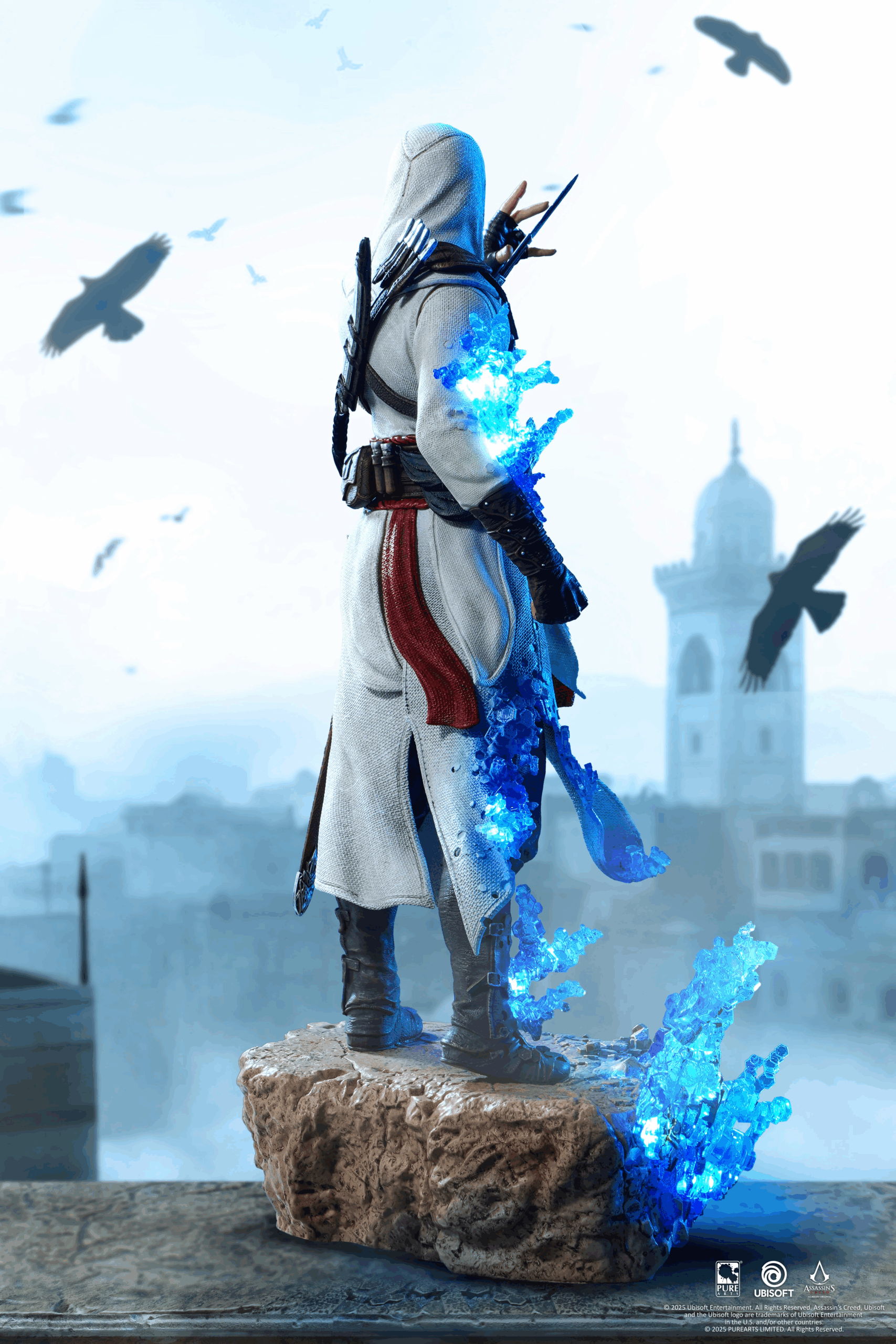 La icónica estatua de Altair en escala 1/8 rinde homenaje al legendario Asesino y protagonista del primer Assassin’s Creed, Altair Ibn-La’Ahad. Con su hoja oculta lista para atacar, se alza sobre una base de piedra inspirada en las antiguas fortalezas de Tierra Santa. A su lado izquierdo se materializa el característico efecto Animus con iluminación LED, representando el puente entre pasado y presente.