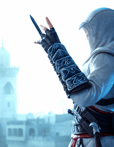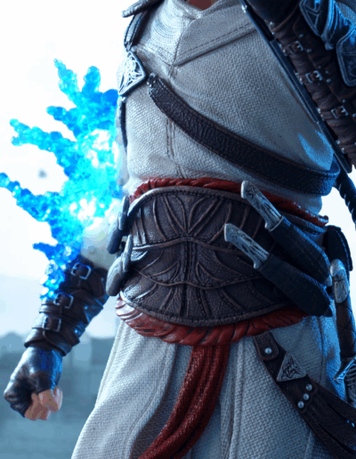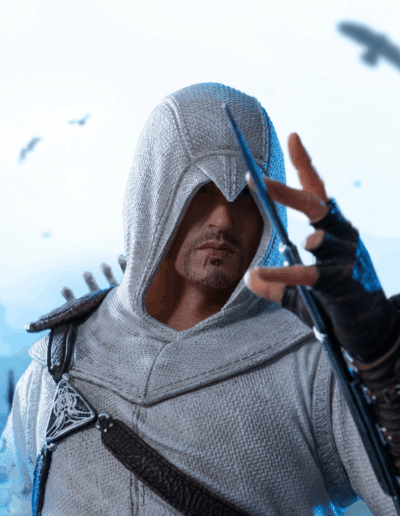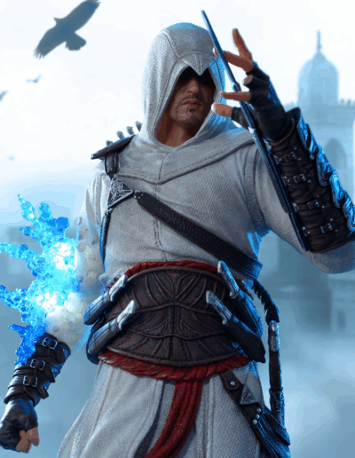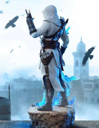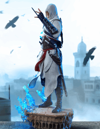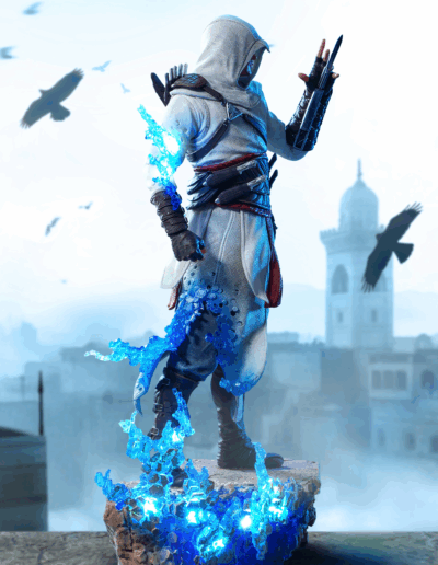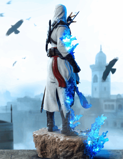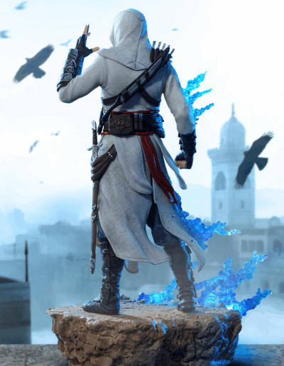La icónica estatua de Altair en escala 1/8 rinde homenaje al legendario Asesino y protagonista del primer Assassin’s Creed, Altair Ibn-La’Ahad. Con su hoja oculta lista para atacar, se alza sobre una base de piedra inspirada en las antiguas fortalezas de Tierra Santa. A su lado izquierdo se materializa el característico efecto Animus con iluminación LED, representando el puente entre pasado y presente.