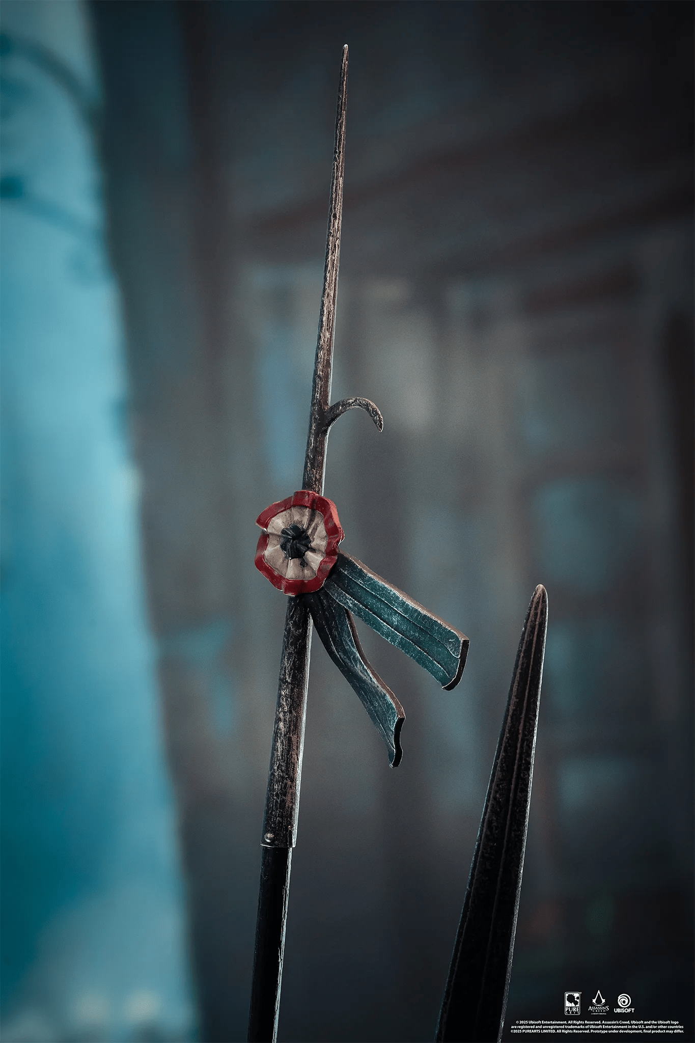 El característico efecto Animus iluminado con LED emerge de su costado derecho, intensificando la escena de lucha y revolución.