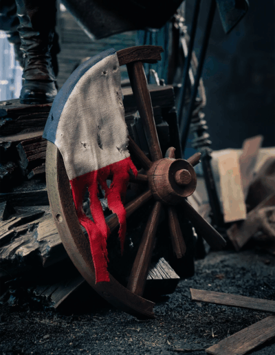 - Base inspirada en la Revolución Francesa con guillotina y bandera francesa