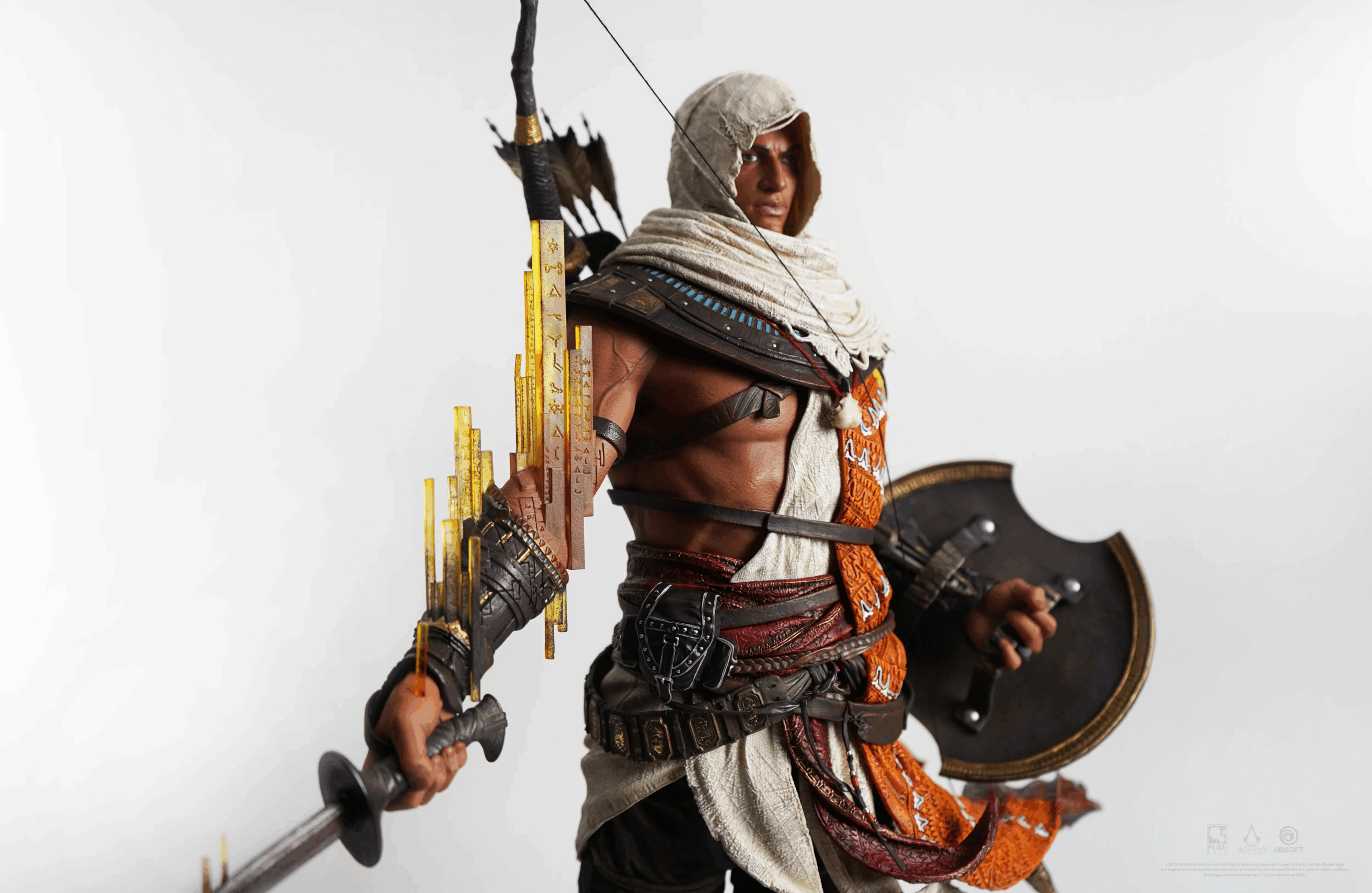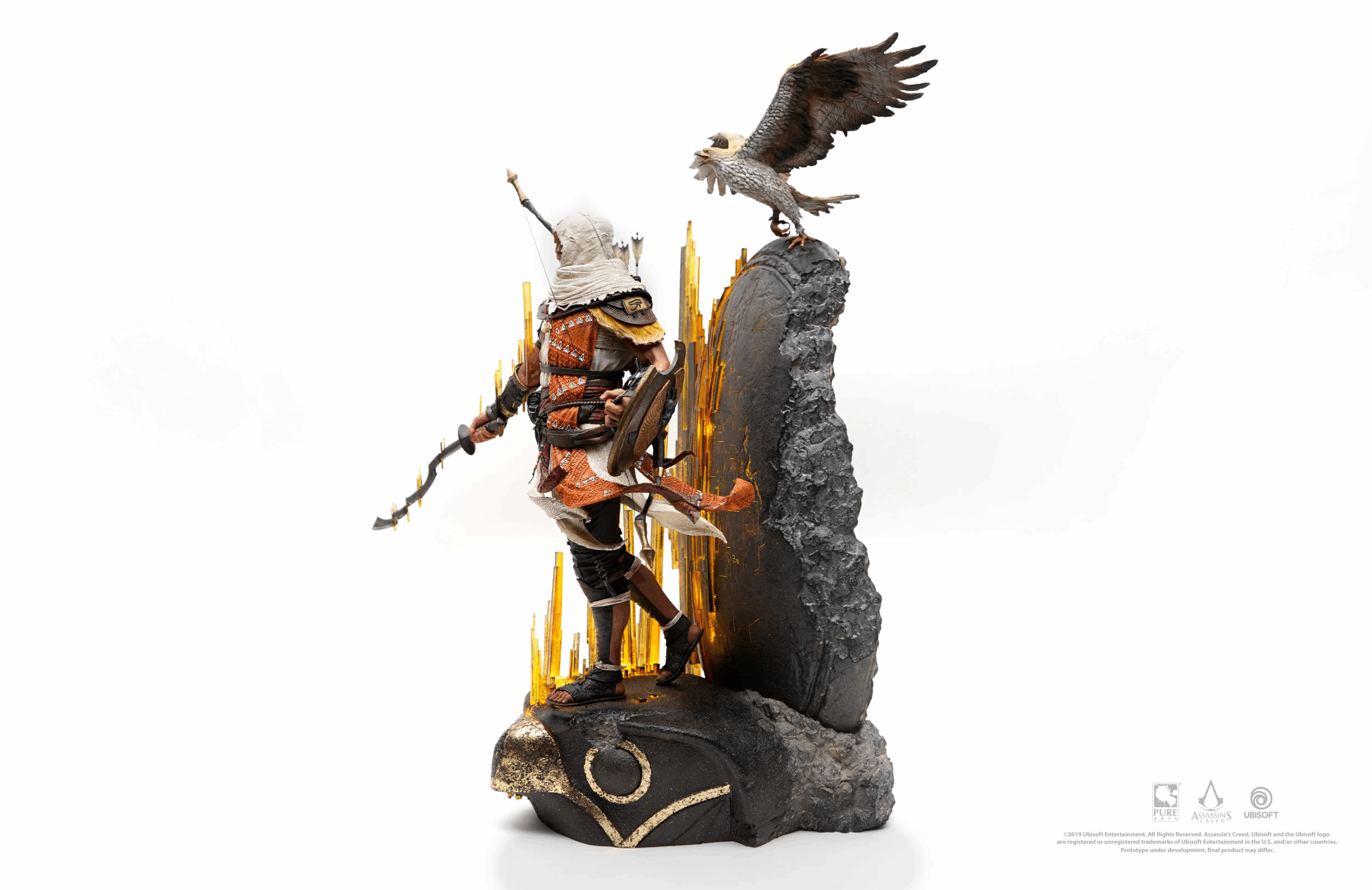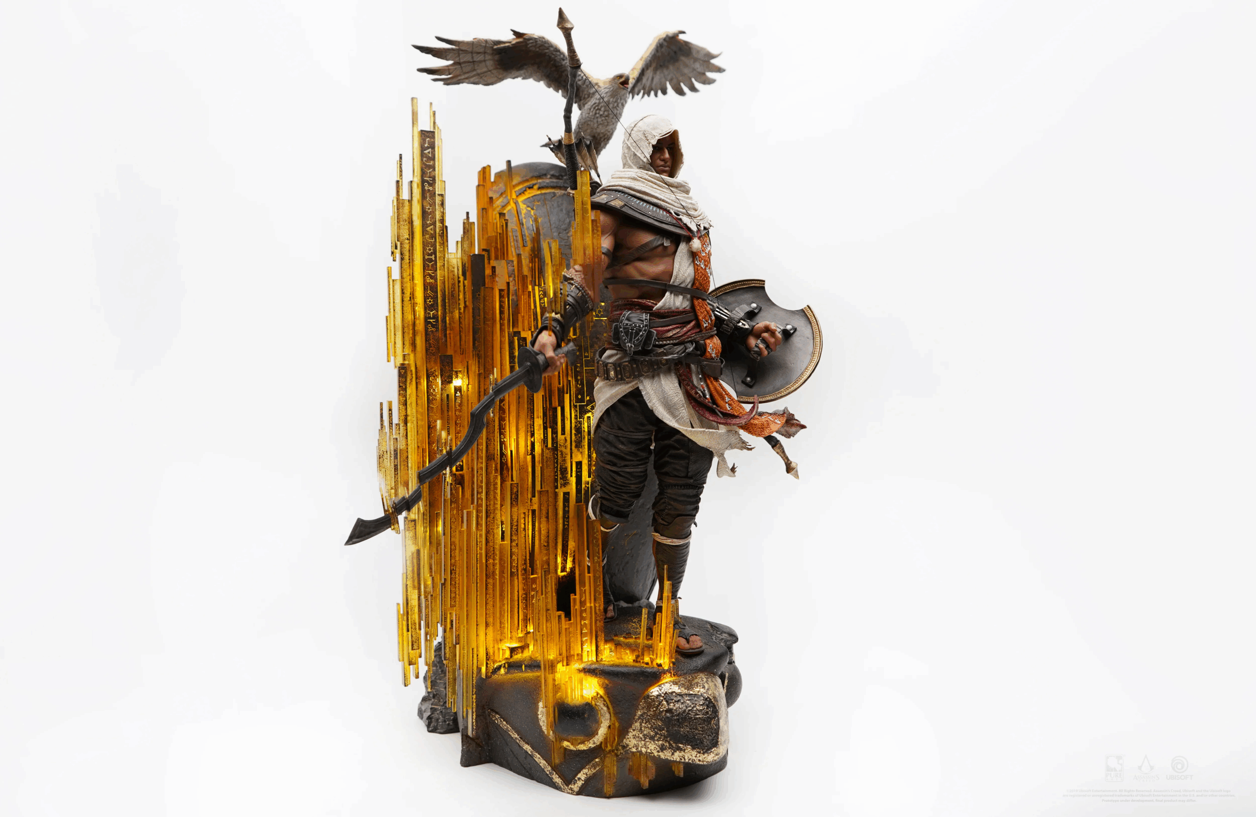 Bayek de Siwa, cofundador de los Ocultos, emerge de la sincronización del Animus en esta impresionante estatua de poliresina a escala 1/4, acompañado de su inseparable águila Senu.