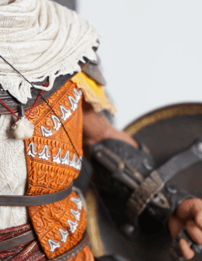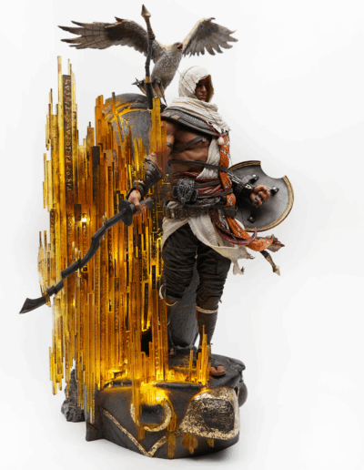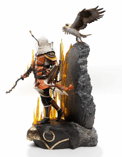 Bayek de Siwa, cofundador de los Ocultos, emerge de la sincronización del Animus en esta impresionante estatua de poliresina a escala 1/4, acompañado de su inseparable águila Senu.