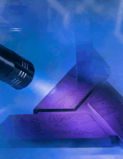 - Lámpara UV para revelar un mensaje secreto en la base