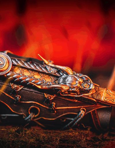 Esta réplica usable y funcional puede colocarse tanto en modo Tanto como en modo Hoja Oculta, ideal para recrear las batallas contra las fuerzas de Oda Nobunaga.