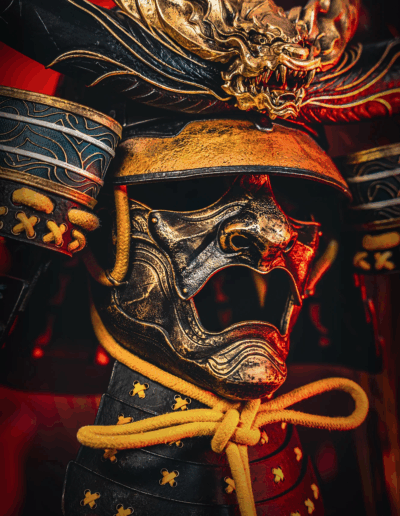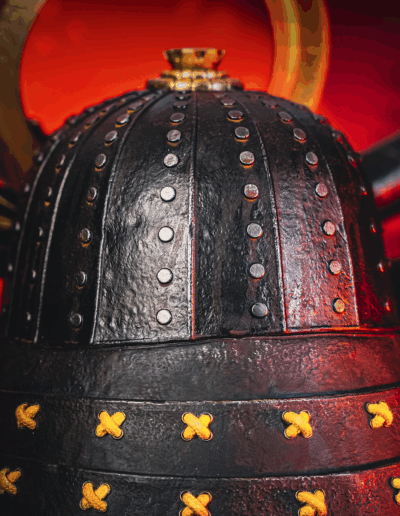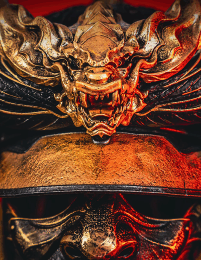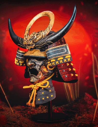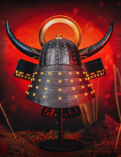 El casco cuenta con una placa facial desmontable y cordones estilo kabuto de tela, aportando un nivel de autenticidad y detalle digno de museo. Aunque fue concebido principalmente como pieza de exhibición, también puede ser usado, convirtiéndose en un objeto ideal tanto para coleccionistas como para cosplayers de alto nivel.